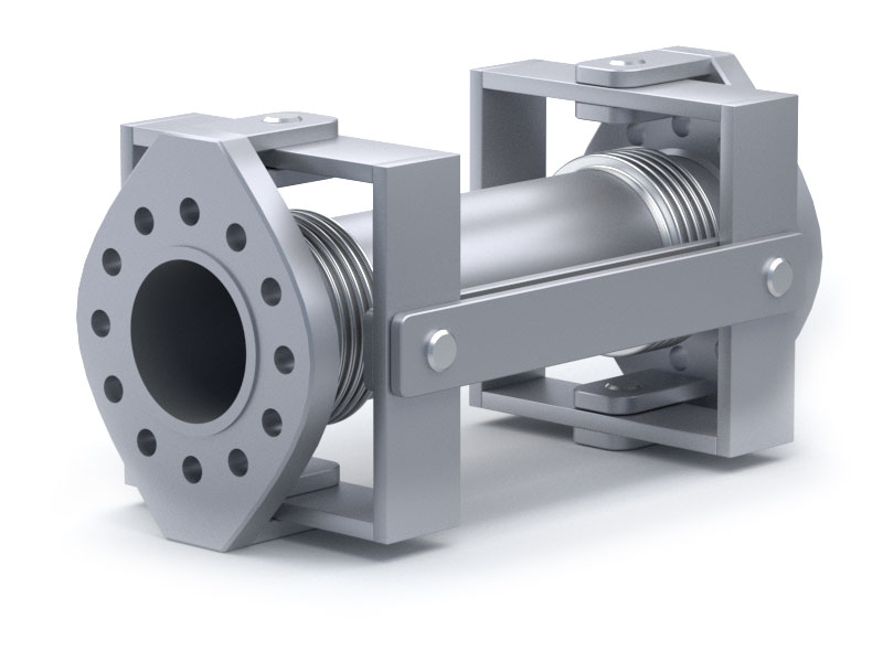 Double gimbal expansion joint is designed to absorb lateral and angular movements in any direction. This model is made up of two bellows joined together by a linking pipe and a double universal connection system. The benefit of having these expansion joints are to absorb pressure thrust in the system.Features
