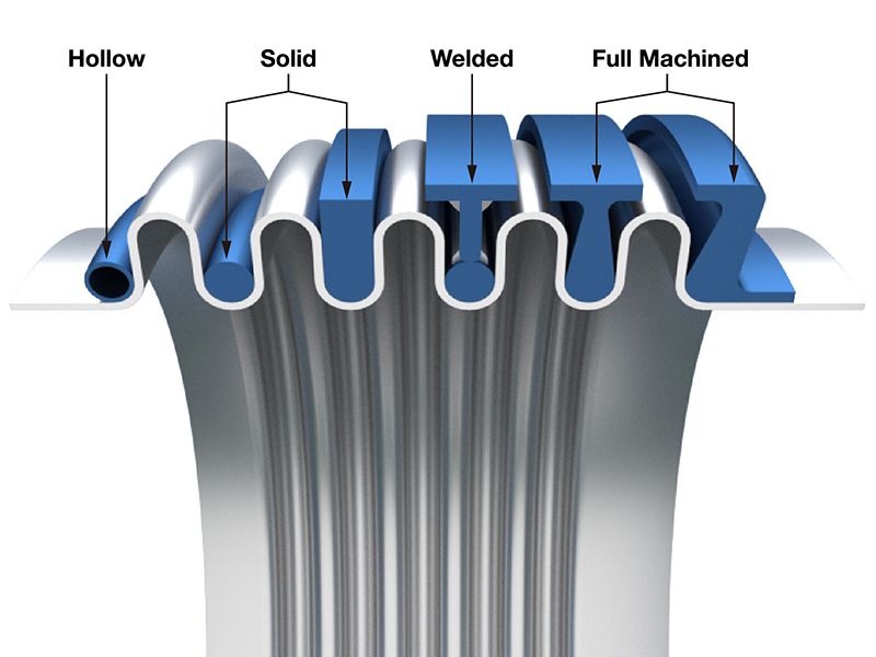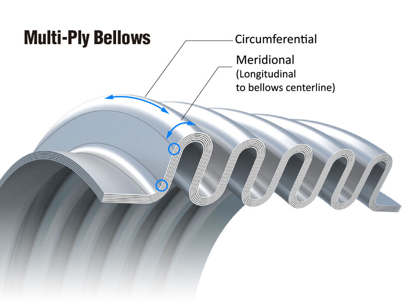 Expansion bellows can be designed with reinforcing or equalizing rings which are located around the outside of the convolutions, preventing bellows being forced out from high pressure. The principal purpose of these devices is to reinforce the bellows under internal high pressure, so that bellows does not squirm and equalize movement among all the convolutions.