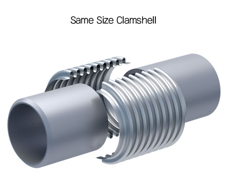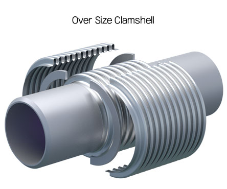 Clamshell bellows is an effective solution when a quick and urgent replacement of the bellows is needed. Clamshell bellows are often used when an existing bellows needs replacing. Clamshell bellows is a two-piece bellows which is welded on site. Clamshell expansion joints can be designed as either temporary or permanent solution and as an over-sized or same-sized clamshell metal expansion joint bellows.Types of clamshell expansion joints